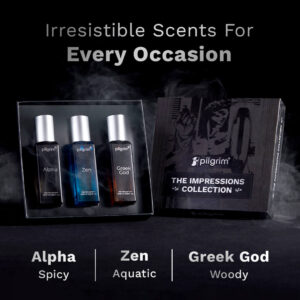 ₹ 799.00Original price was: ₹ 799.00.₹ 299.00Current price is: ₹ 299.00. Add to cartPilgrim The Impressions Collection is a combo pack of three unique masculine fragrances (Alpha, Zen & Greek God) designed to enhance your masculine presence and leave a lasting impression The three perfumes are long-lasting and are both refreshing and enticing, making it perfect for day and night wear.