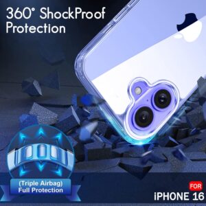 Ultra-Hybrid Crystal Clear Back Case Cover for iPhone 16 | Shockproof Design | Camera Protection Bump | Hard Clear Back | Bumper Case Cover for iPhone 16 (PC & TPU, Transparent)