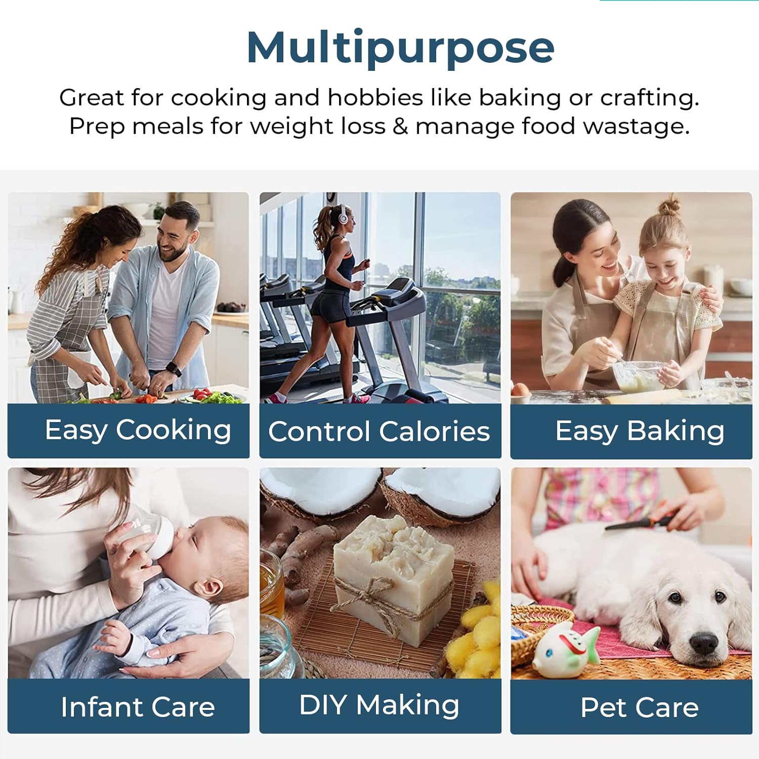 Precision Accuracy: Equipped with high-precision sensors, this weighing machine for food provides exact measurements in grams, ounces, pounds, and milliliters, ensuring perfect ingredient ratios every time.