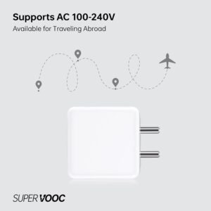 - 80W SUPERVOOC Super Flash Charge technology delivers 80W MAX of charging power.Charges Supervooc compatible Smartphones to to 50% in 12 minutes and 100% in 32 minutes.