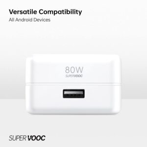 80W SUPERVOOC Fast Charger, Single Port USB Fast Charger, BIS Certified, Wall Charger Adapter, Compatible with OPPO A5 2020 , OPPO A52 , OPPO A53 , OPPO A53s 5G , OPPO A54 , OPPO A72 , OPPO A74 5G , OPPO A78 5G , OPPO A9 , OPPO A9 2020, All Other SUPERVOOC SUPPORTED OPPO, VIVO Smartphones.