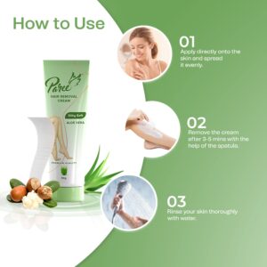 - PREMIUM FORMULA: Paree hair removal cream for women is infused with the goodness of Aloe Vera and Shea butter. Shea butter boosts skin moisture.