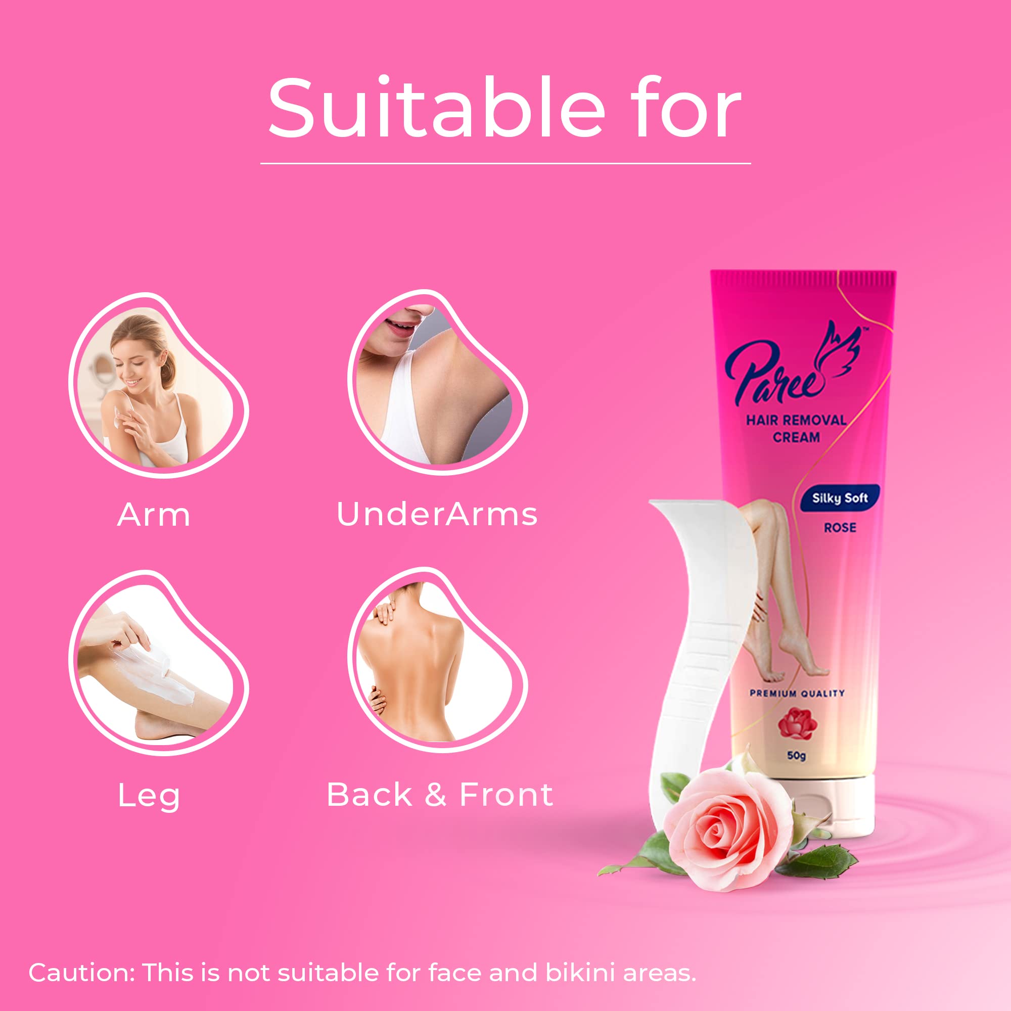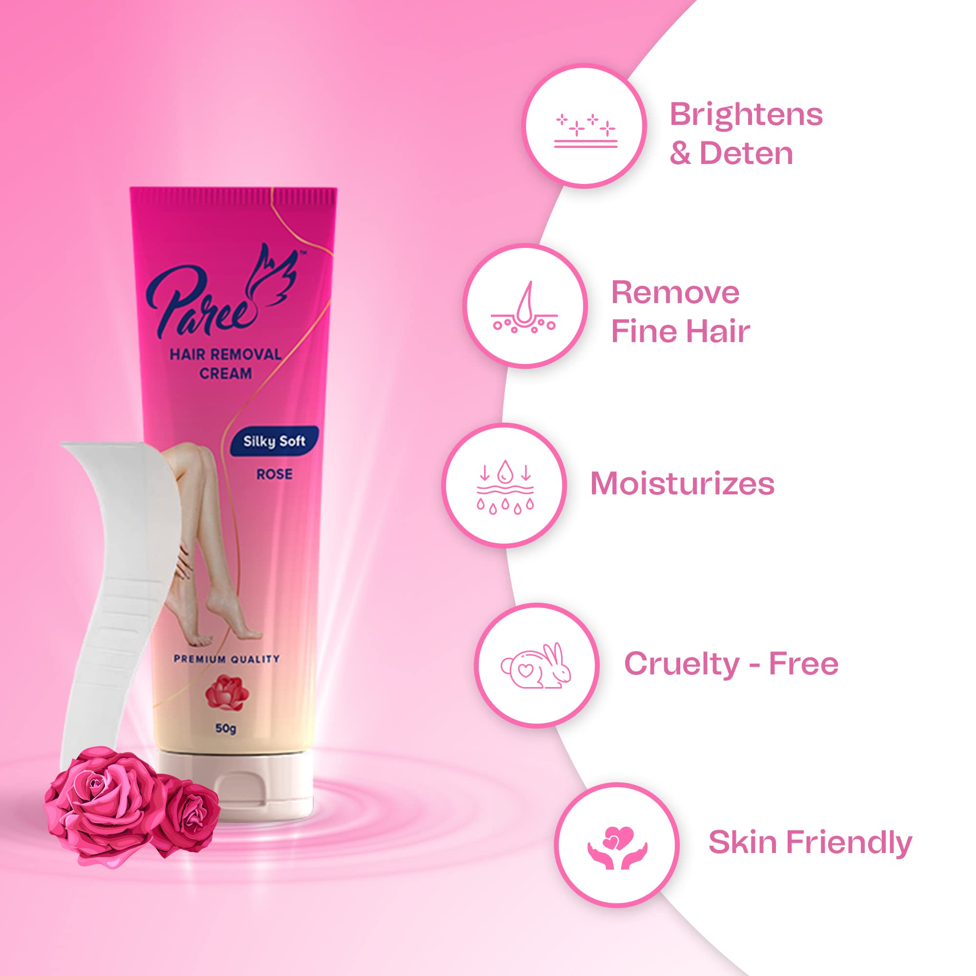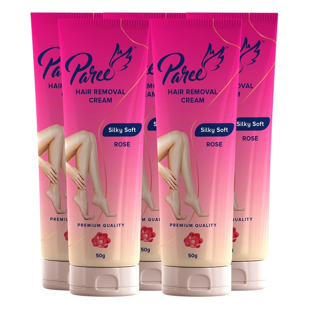 Paree Women Hair Removal Cream Silky Soft With Rose, White, Pack Of 5